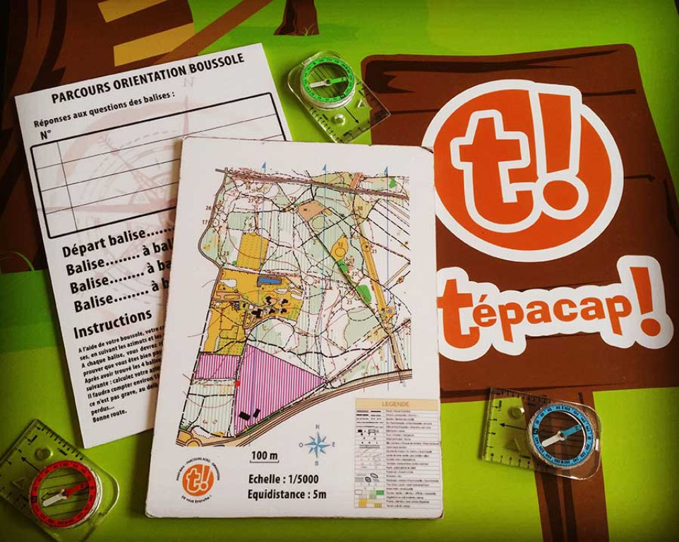 Course d'orientation avec carte, questions sur la nature à chaque balise.